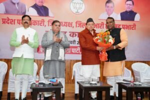 मुख्यमंत्री धामी ने मुख्य सेवक सदन में आयोजित प्रदेश पदाधिकारी, जिला अध्यक्ष, जिला प्रभारी एवं सह-प्रभारी संवाद कार्यक्रम में प्रतिभाग किया
