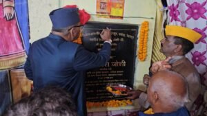 रामलीला का शुभारंभ एवं अपने स्वर्गीय पिता श्याम दत्त जोशी की पुण्य स्मृति में निर्मित ‘सांस्कृतिक मंच’ का लोकार्पण करते कैबिनेट मंत्री गणेश जोशी