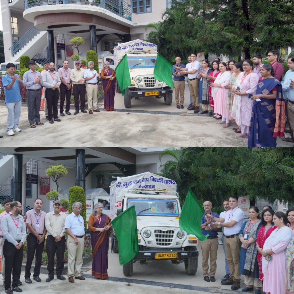 सोमवार को एसजीआरआर विश्वविद्यालय की कुलपति व कुलसचिव ने हरी झण्डी दिखाकर वाहनों को रवाना किया