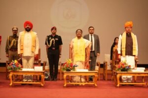 राष्ट्रपति श्रीमती द्रौपदी मुर्मु ने पतंजलि विश्वविद्यालय हरिद्वार के द्वितीय दीक्षांत समारोह में स्वर्ण पदक प्राप्त विद्यार्थियों को सम्मानित किया। रविवार को आयोजित इस कार्यक्रम में कुल 1454 विद्यार्थियों को उपाधि प्रदान की गई। 62 शोधार्थियों को विद्या वारिधि और 3 शोधार्थियों को विद्या वाचस्पति की उपाधि प्रदान की गई, जबकि 615 विद्यार्थियों को परास्नातक और 774 विद्यार्थियों को स्नातक की उपाधि प्रदान की गई। इस अवसर पर राज्यपाल लेफ्टिनेंट जनरल गुरमीत सिंह (से नि.) ने राष्ट्रपति को राष्ट्रपति भवन की विविध वनस्पतियों पर आधारित दो पुस्तकें ‘फ्लोरा ऑफ राष्ट्रपति भवन’ एवं ‘मेडिसिनल प्लांट्स ऑफ राष्ट्रपति भवन’ की प्रतिलिपियाँ भी भेंट कीं।